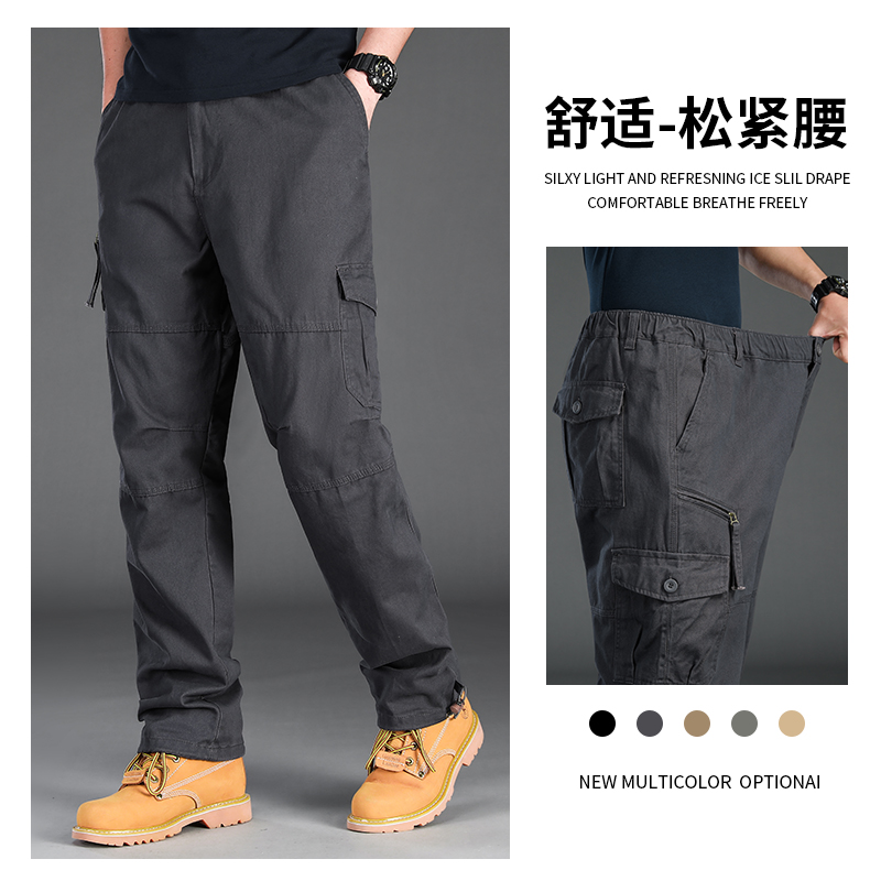 纯棉工装裤男加绒加厚春秋季宽松直筒男款裤子男士休闲裤大码男裤