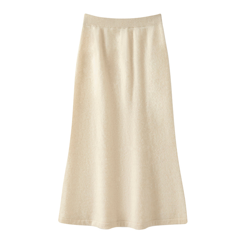 高腰显瘦100%山羊绒A字裙女2024年秋冬新款针织半身裙鄂尔多斯市