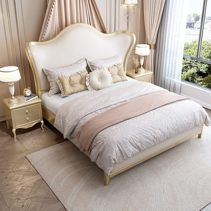 热销美式太子床实木床1.8米主卧双人床1.5米次卧单人床软包新婚公