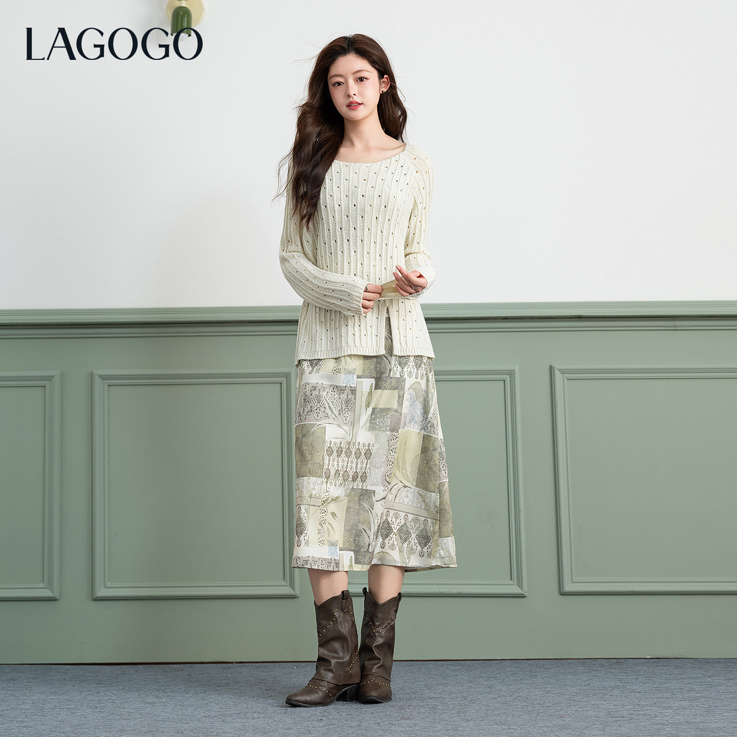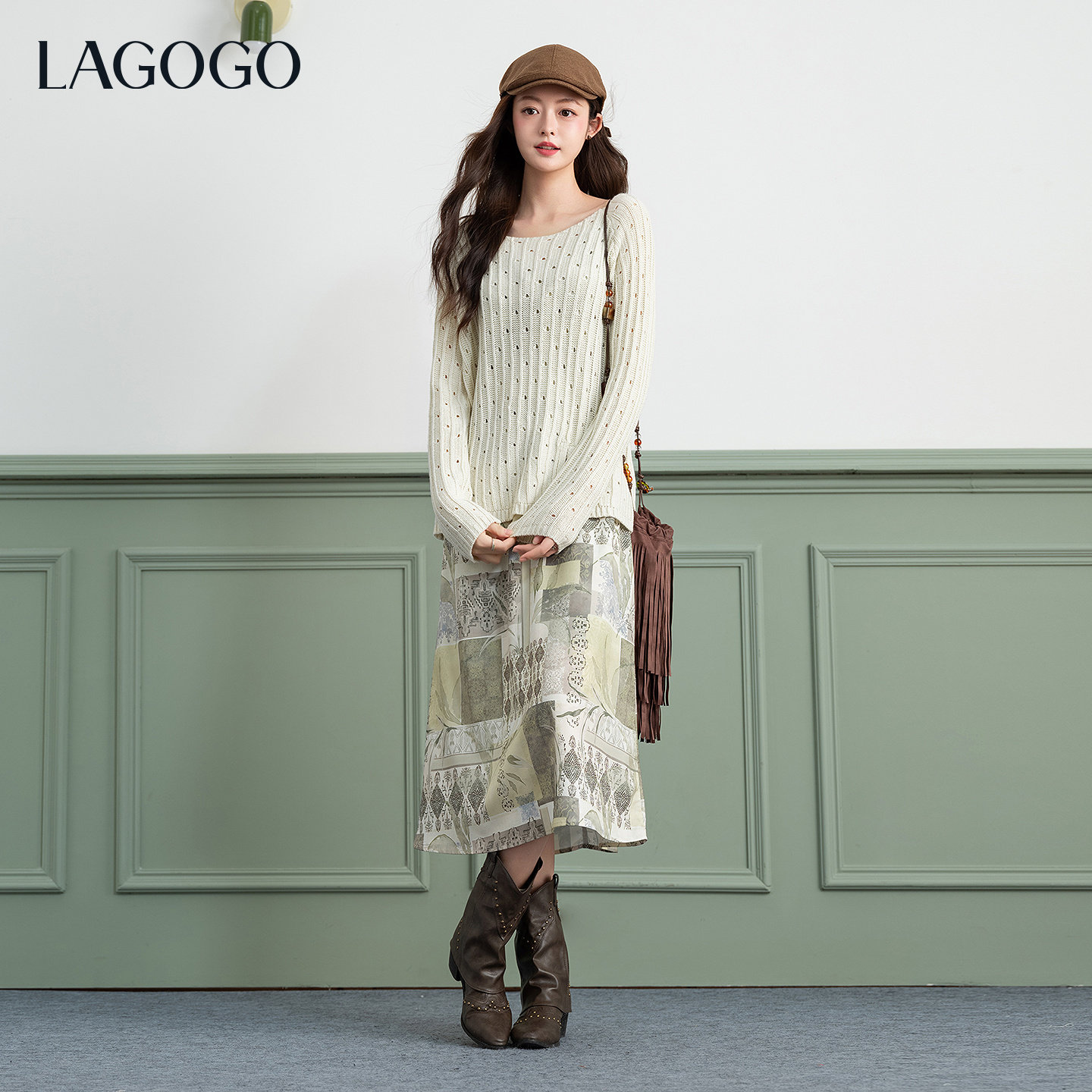 LAGOGO浪漫画报两件套连衣裙女拉谷谷2026春新款淑女印花仙气裙子