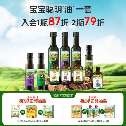 【2件79折】爷爷的农场核桃油亚麻籽油牛油果油橄榄油辅食用油