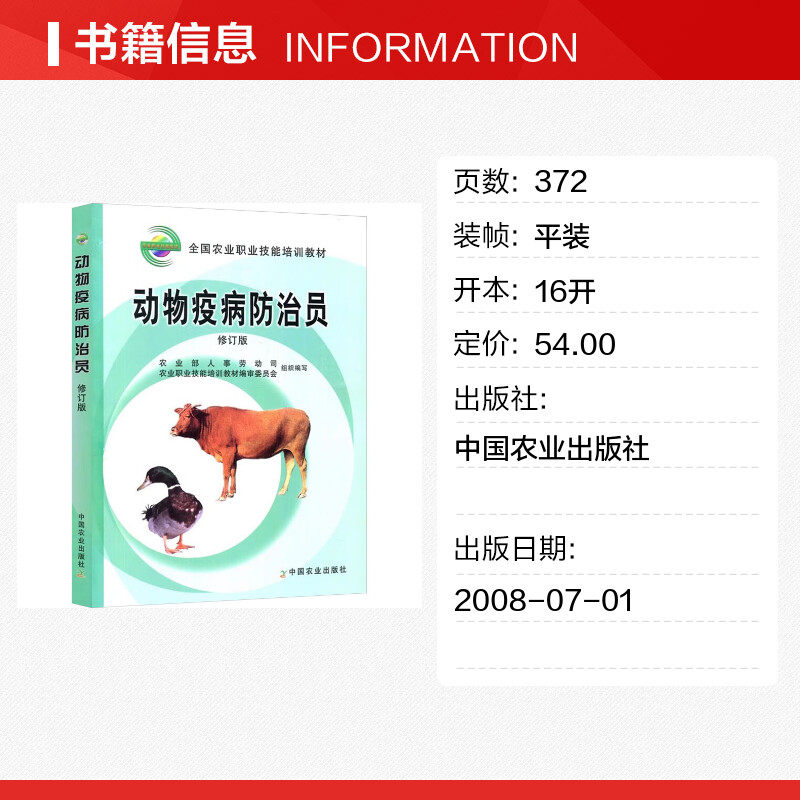 动物疫病防治员 修订版 突出技能培训的特点 推动我国基层动物防疫人员培养 提高防控重大动物疫病的能力 兽医诊疗正版书籍