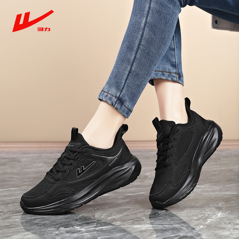 回力女鞋2025爆款全黑色上班工作网鞋宽胖脚大码网面透气运动跑鞋