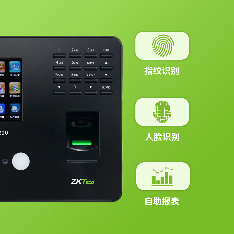 ZKTeco熵基BK200动态人脸指纹识别考勤机打卡机面部刷脸上班签到