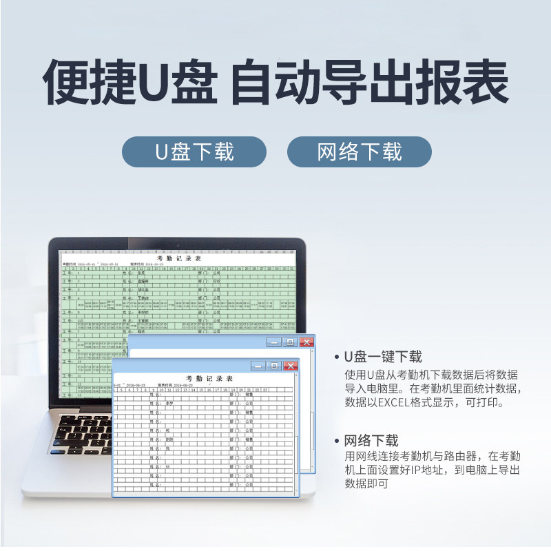 动态人脸识别指纹打卡机自助报表