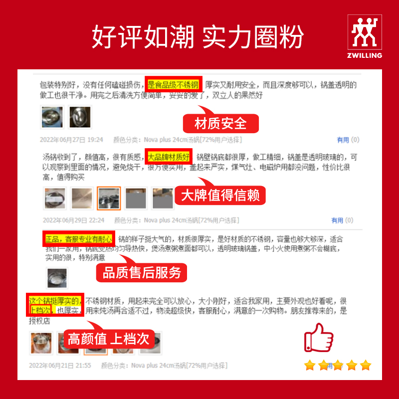 zwilling双立人NovaPlus20cm汤锅厨房家用不锈钢炖煮锅蒸锅深烧锅