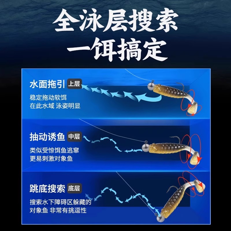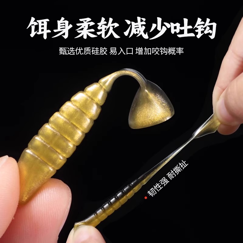 50条小T尾鱼路亚微物根钓钩软饵海鲈翘嘴鳜鱼假饵软虫铅头钩
