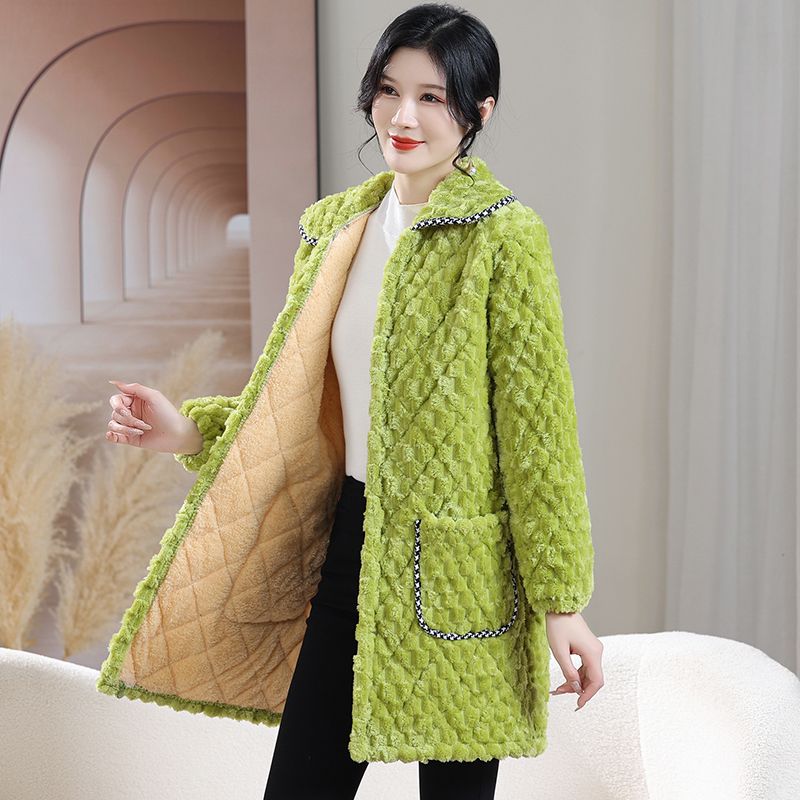 四川省省服中长款女加绒加厚洋气冬季罩衣中长款外穿棉衣外套棉服