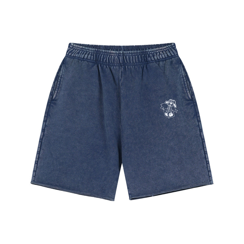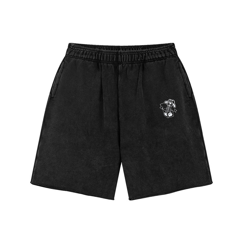 MindError 水洗做旧休闲短裤男夏季潮牌抽绳卷边直筒宽松五分裤子