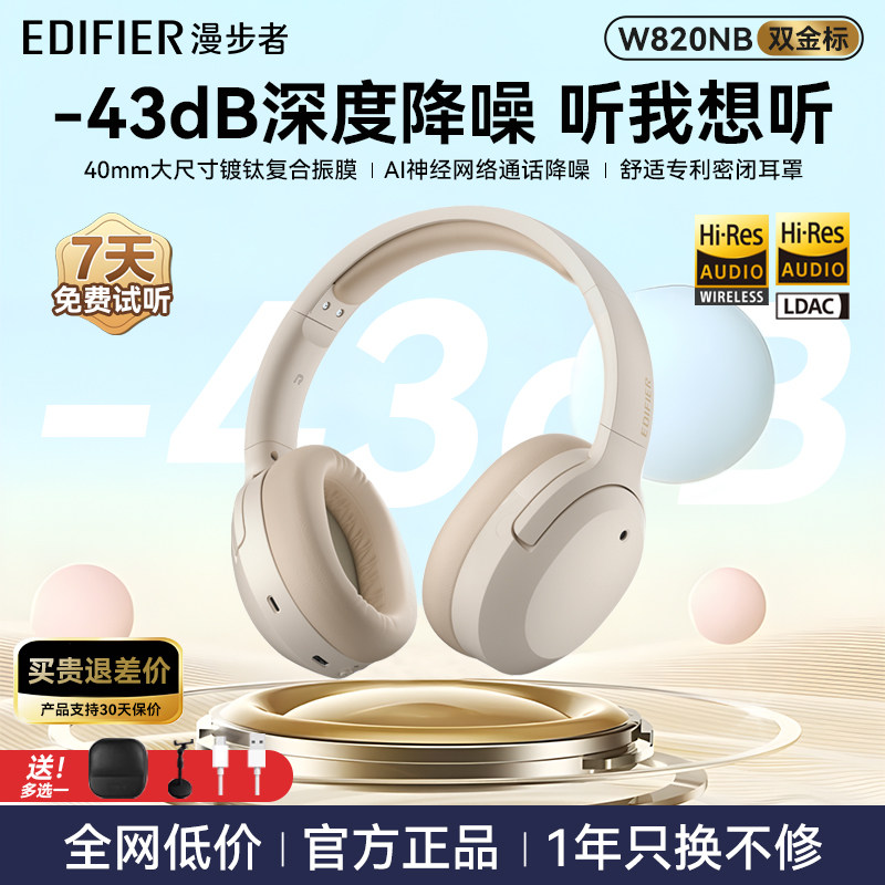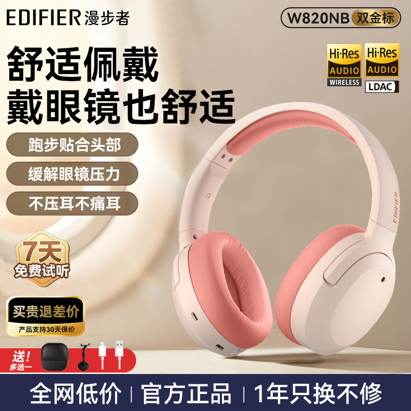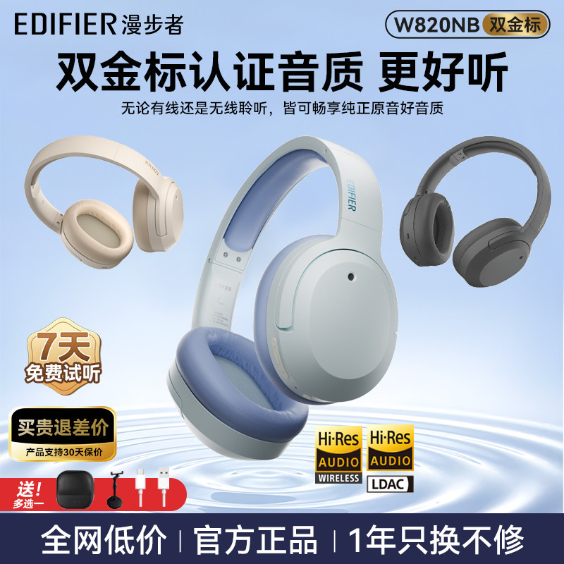 漫步者w820nb双金标蓝牙耳机头戴式无线有线台式主动降噪耳麦运动