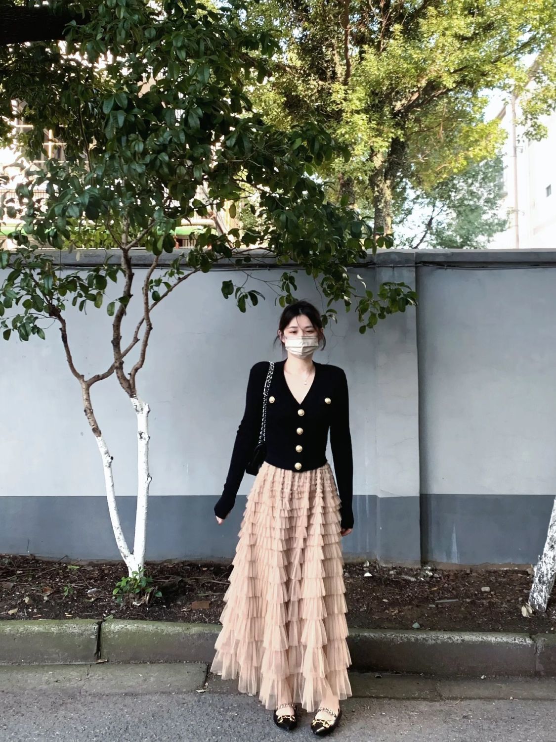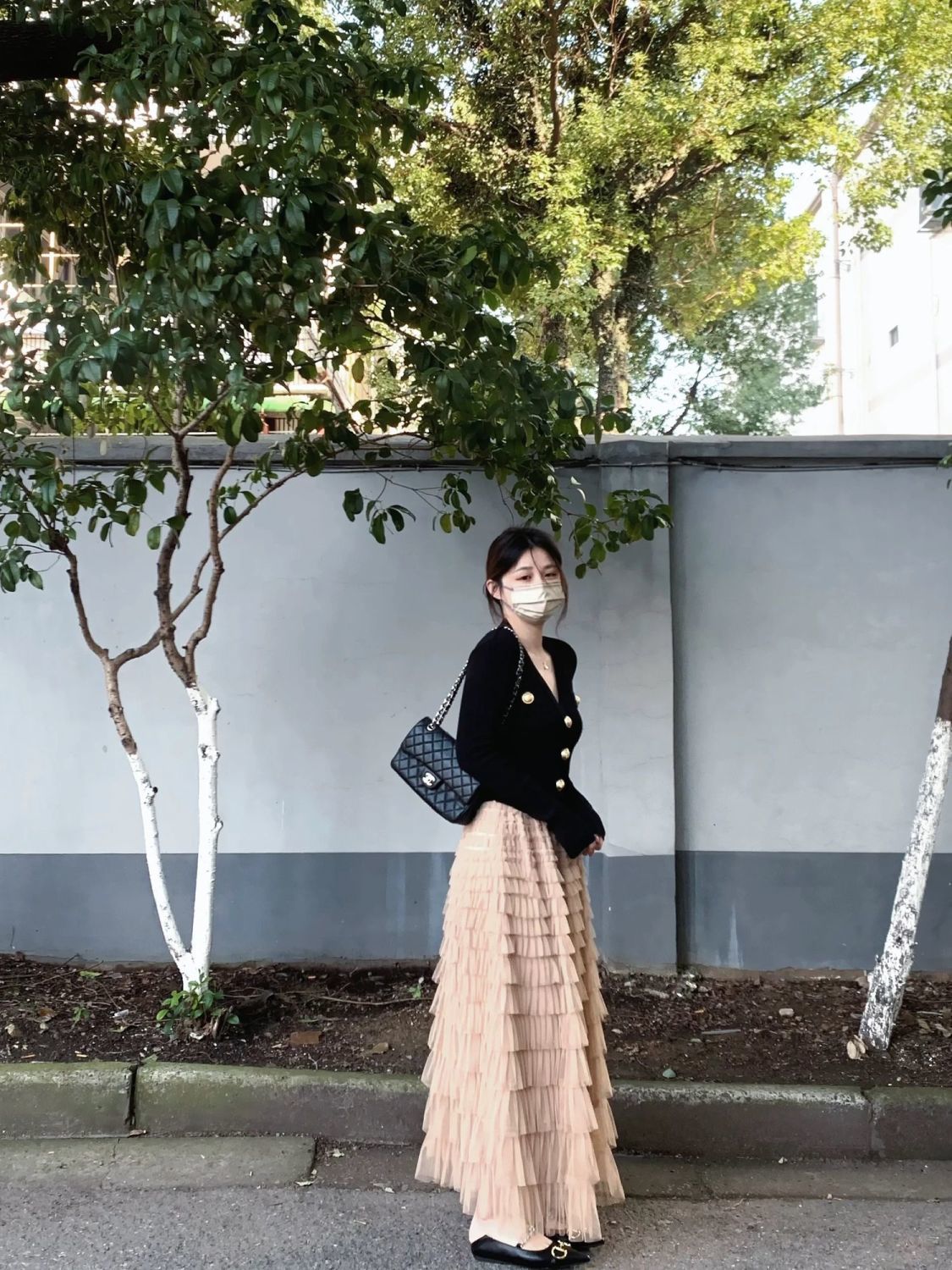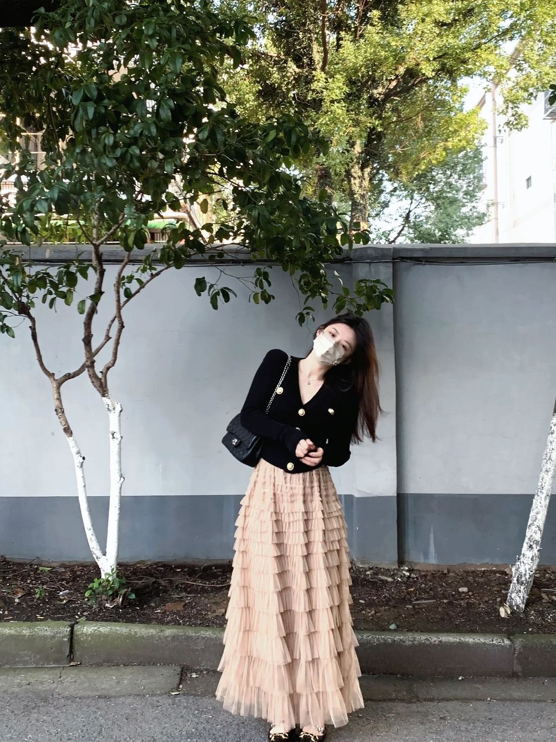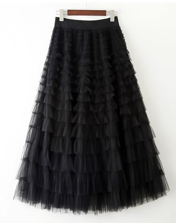 2024新款春夏蓬蓬蛋糕裙高腰半身裙层层裙中长款仙女网纱纱裙长裙