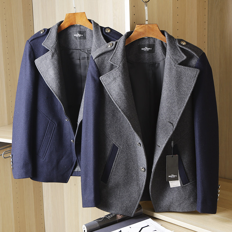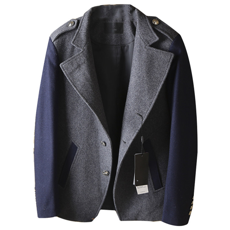 呢子外套男士秋冬季中长款羊毛大衣中青年拼色时尚商务男装K20140
