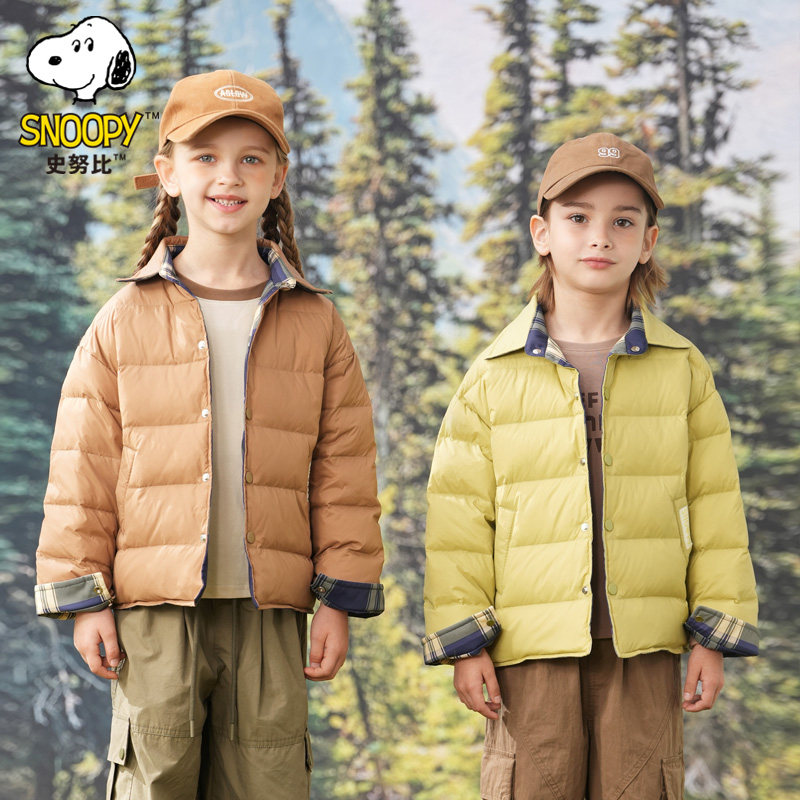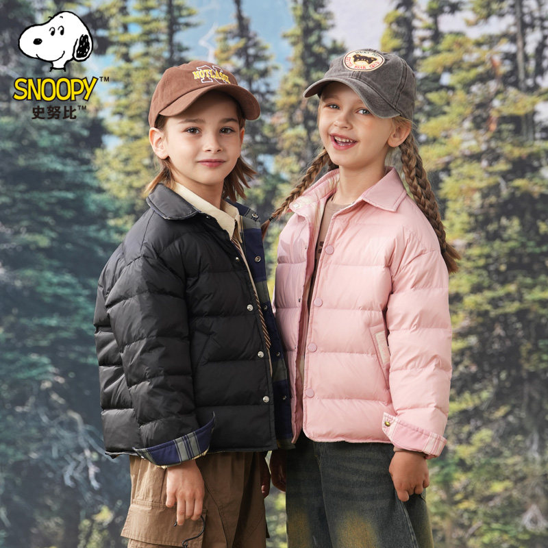 史努比儿童羽绒服轻薄款双面穿男女童装外套衬衫内胆秋冬校服内搭