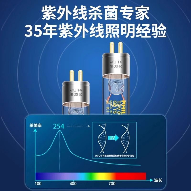 飞利浦紫外线杀菌灯管TUV4W8W30W36W75W医疗家用进口消毒车柜灯管