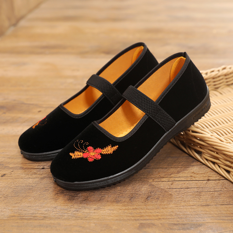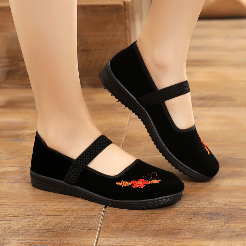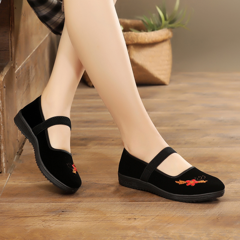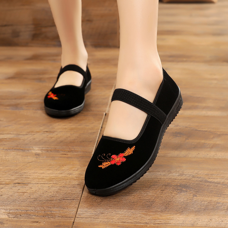 新款老北京女式绣花单鞋 黑色透气休闲中老年妈妈鞋防滑底舞蹈鞋