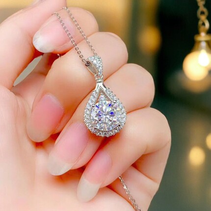 钻石之乡河南钻石商丘钻石河南人造钻石水滴梨形吊坠微镶八心八箭