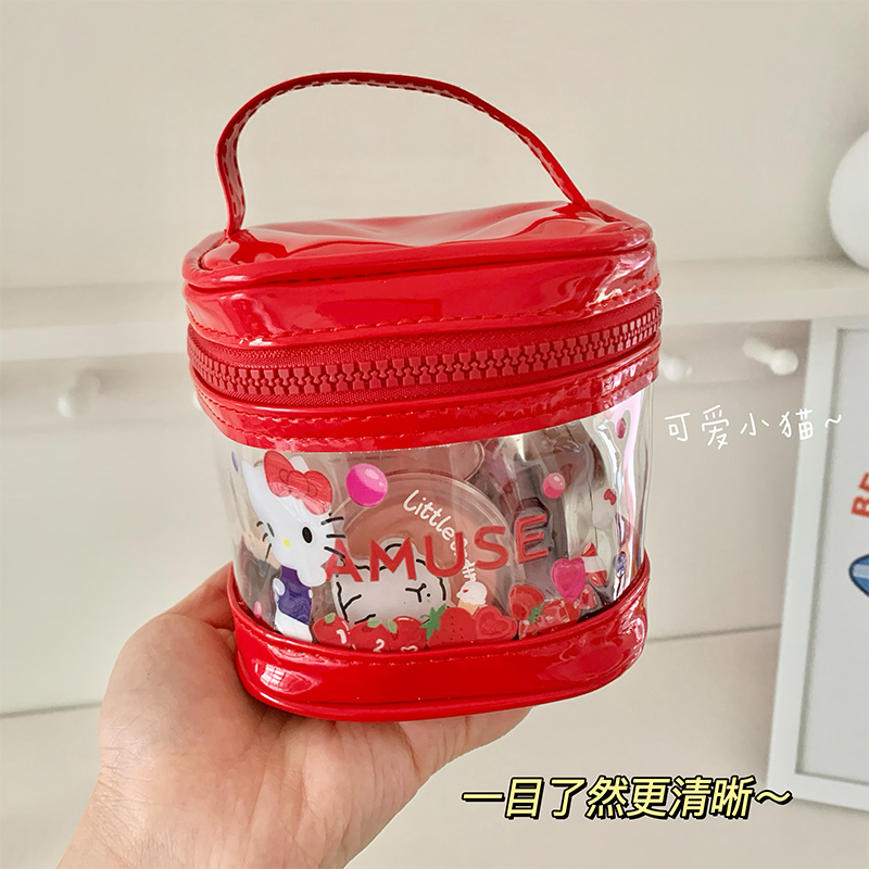 卡通可爱猫咪透明化妆包女ins学生旅行便携化妆品口红洗漱收纳袋