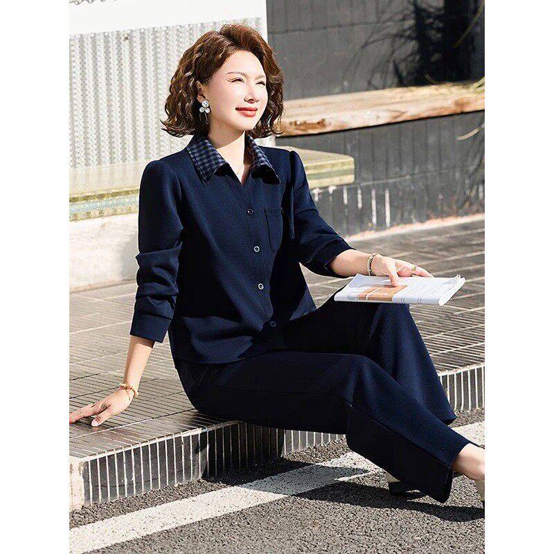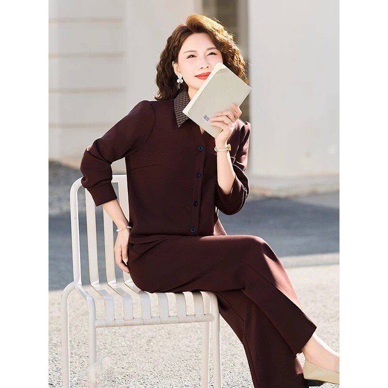 妈妈装春季薄款翻领卫衣两件套