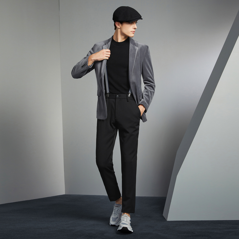 【灯芯绒】柒牌休闲西装男秋冬新款面试新郎修身西服外套Y