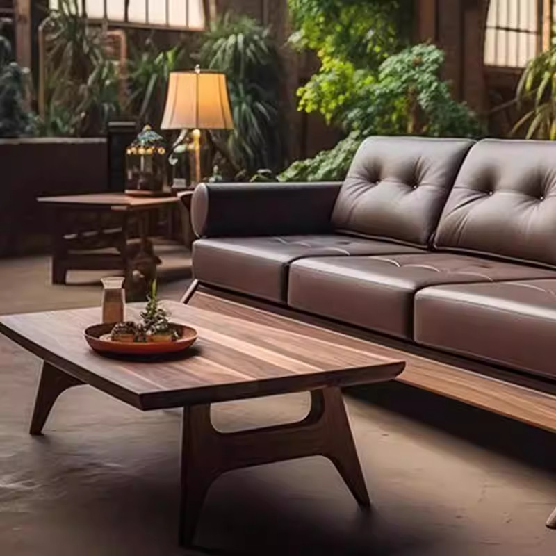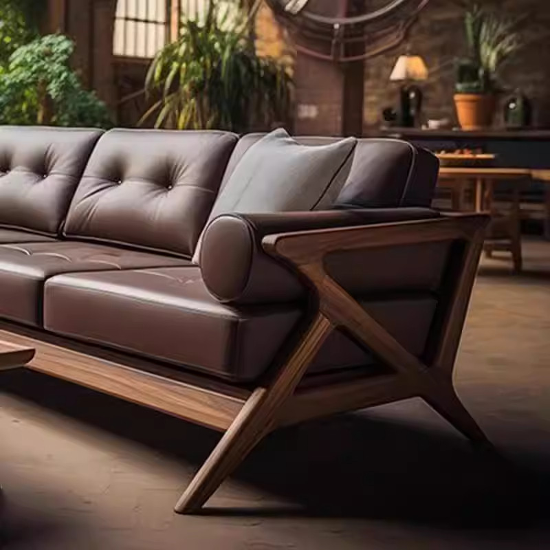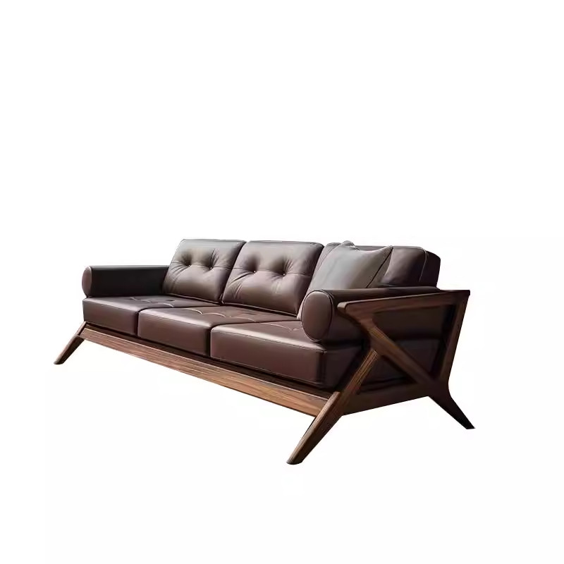新中式酒店民宿真皮2026新款高端客厅大小户型实木皮艺三人位沙发