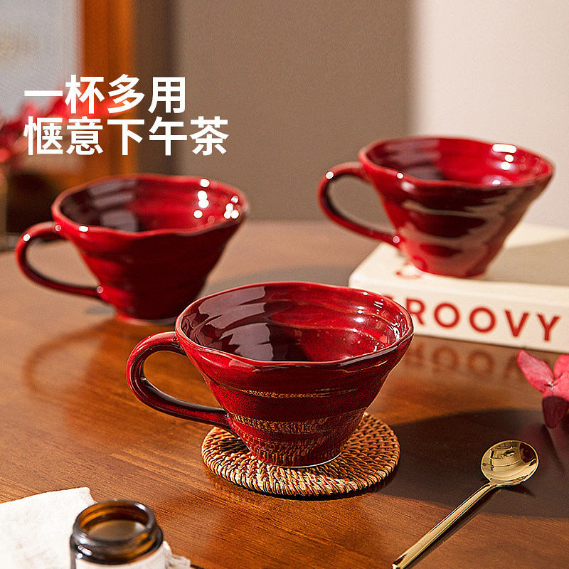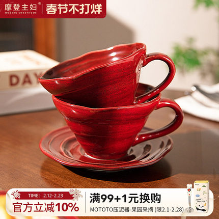 摩登主妇陶瓷马克杯红色杯子马年新年本命年礼物家用喝水杯咖啡杯