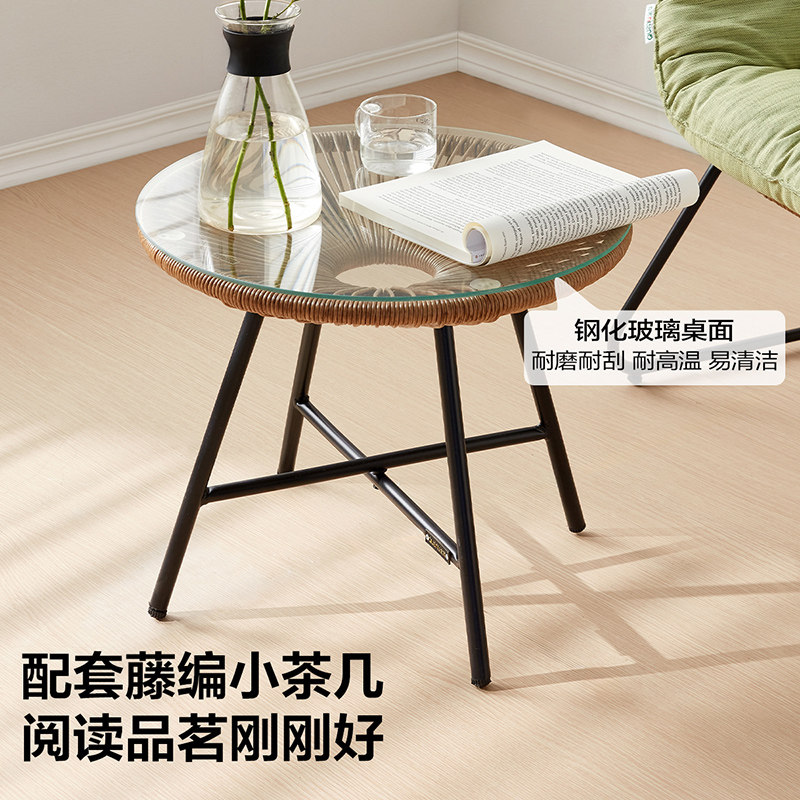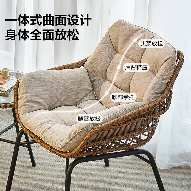 全友家居藤椅三件套休闲阳台客厅高弹坐垫桌椅简约小茶几组合KS