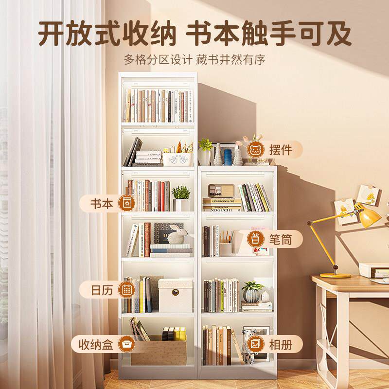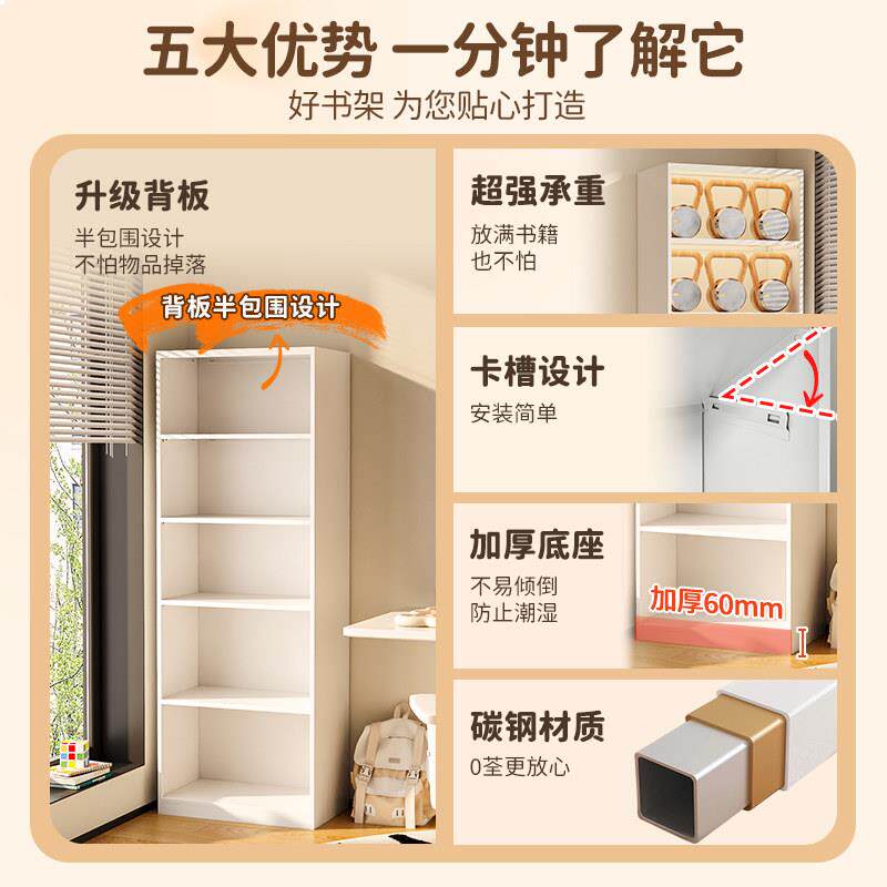 家用钢制书架夹缝书柜一体靠墙儿童书房简易收纳柜多层落地置物架
