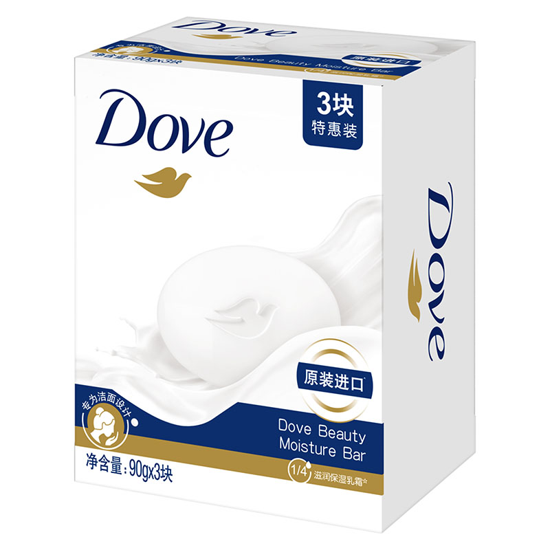 多芬柔肤乳霜香块牛奶滋润洗脸进口香皂90g*3块装清洁肌肤洗脸皂