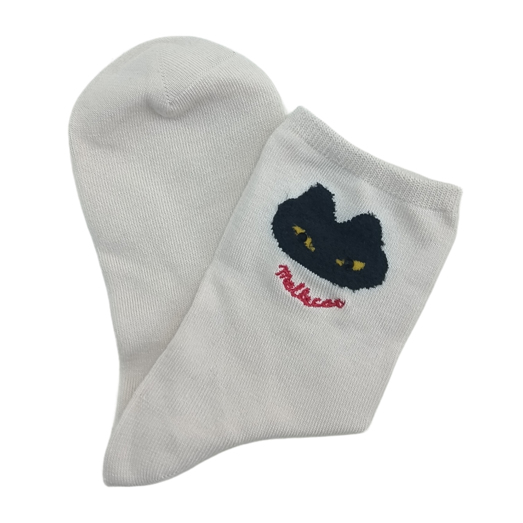 日单中筒袜个性帅气浮雕黑猫刺绣