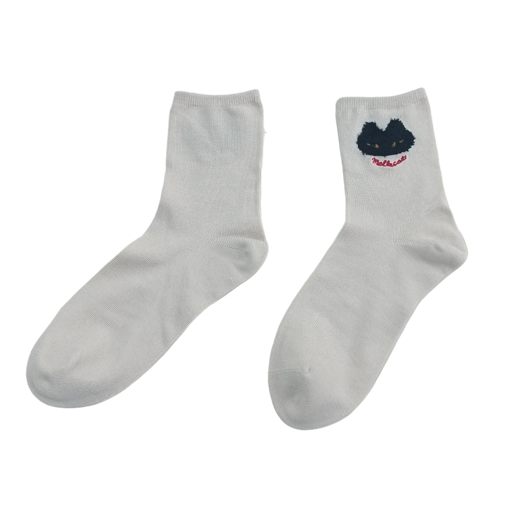 日单 中筒袜女个性帅气浮雕黑猫刺绣奶咖色百搭舒适无骨缝合~