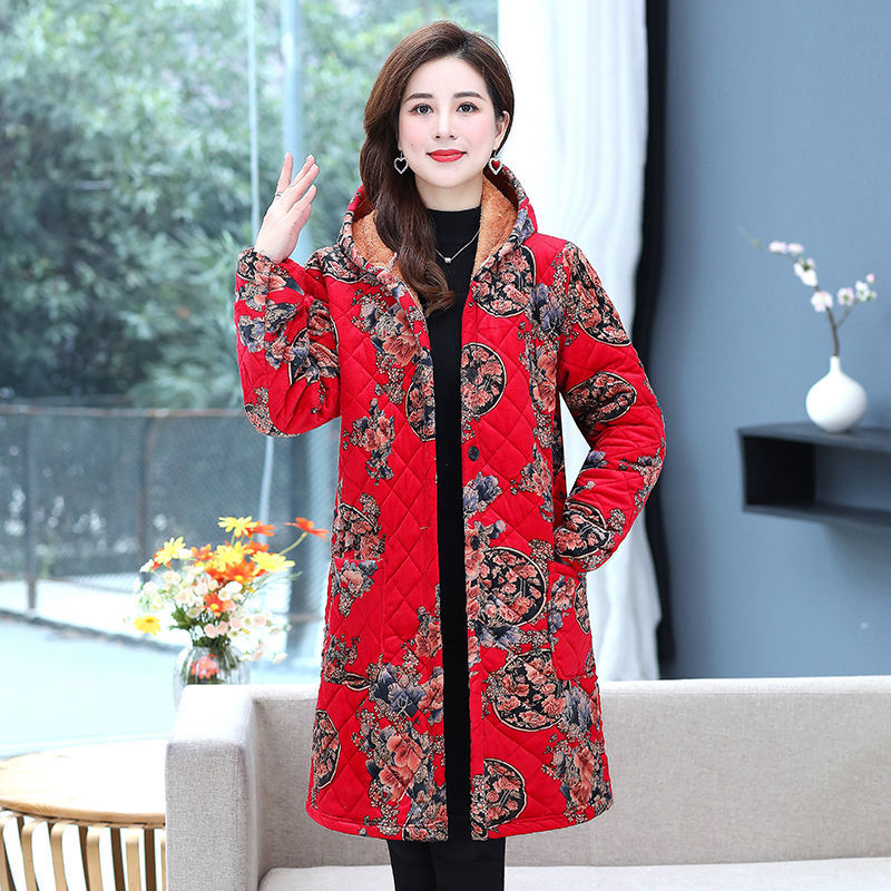 四川省省服中老年加绒加厚围裙秋冬妈妈中长款民族风工作服罩衣