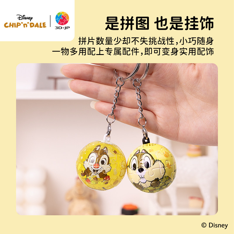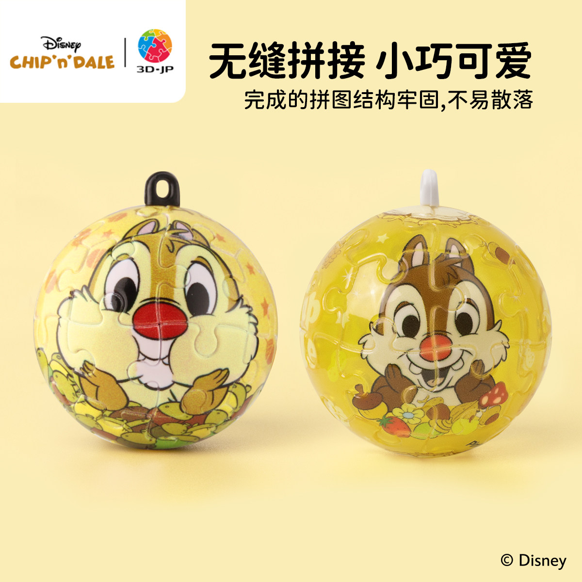 3D-JP迪士尼球形立体钥匙扣拼图24片 奇奇蒂蒂小熊维尼背包挂件