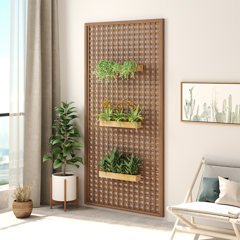 直网格挂墙栅栏壁挂花架防腐木碳化围栏爬藤花架墙面吊顶篱笆隔断