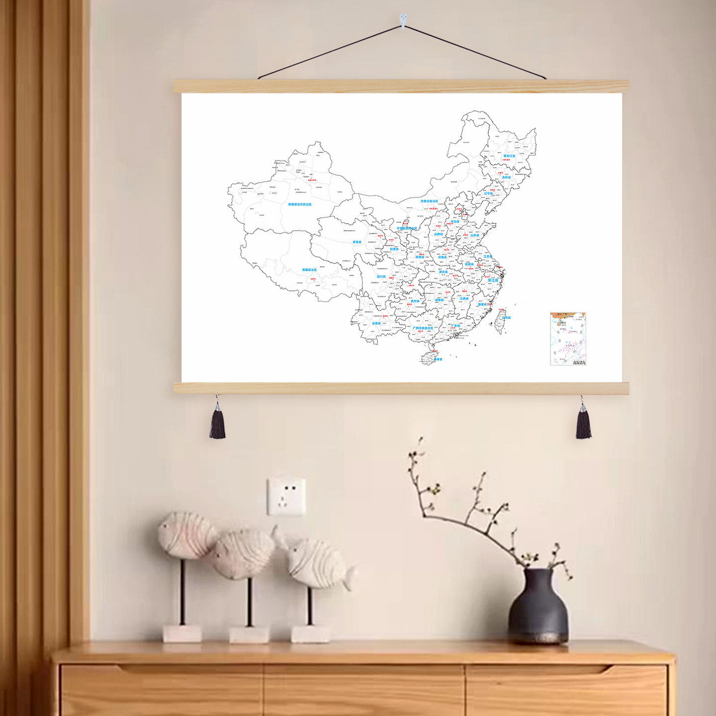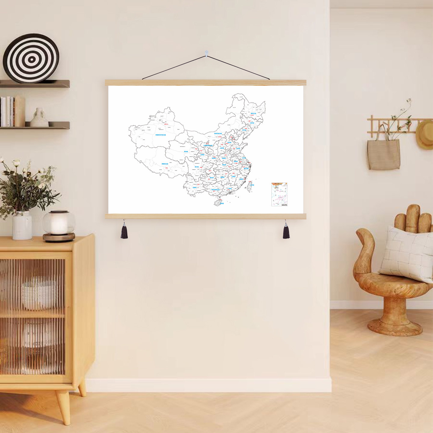 旅游足迹打卡地图挂画全中国旅行城市涂色记录标注装饰画墙壁挂轴