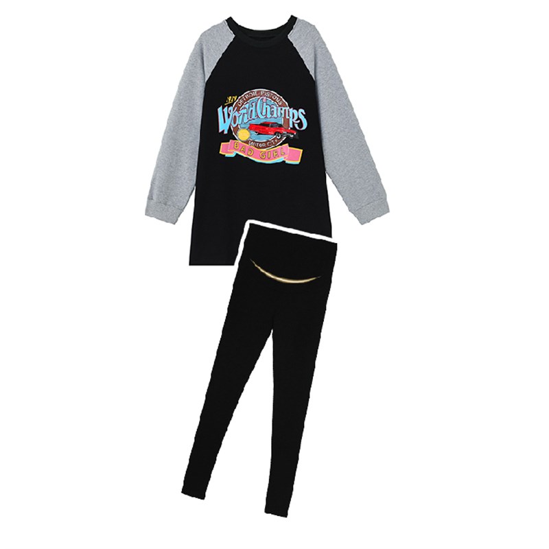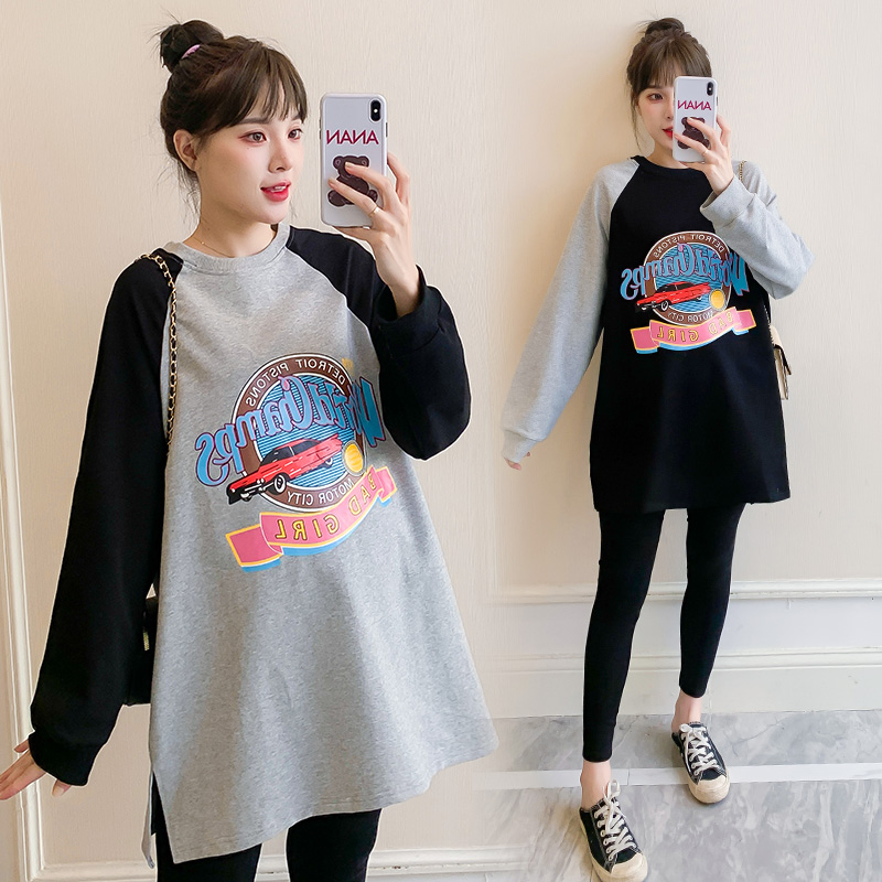 大码孕妇卫衣春秋套装时尚款中长款纯D棉长袖t恤上衣女宽松200斤