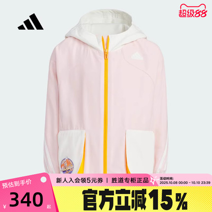 adidas阿迪达斯女小童装秋防风拒水双面穿运动连帽夹克外套