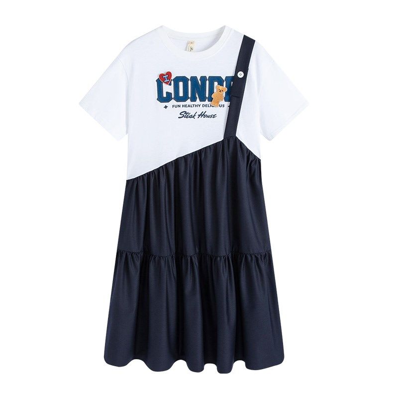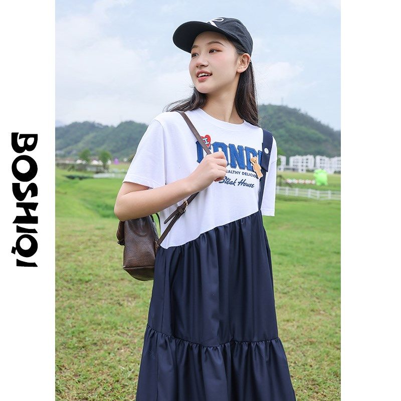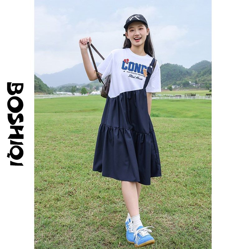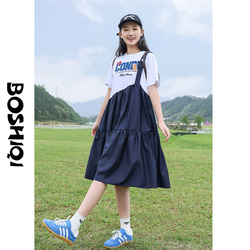 初中生连衣裙少女孩新款2024夏季高中生中长裙子大童短袖学生时尚