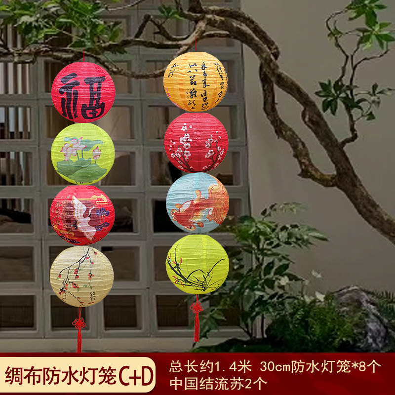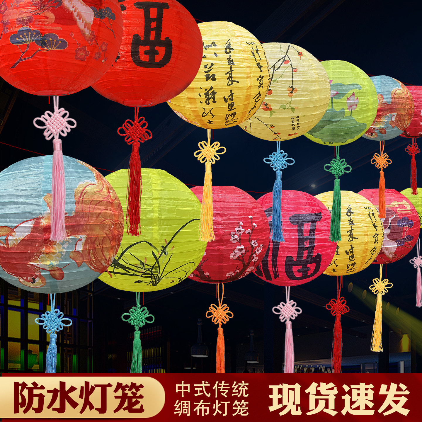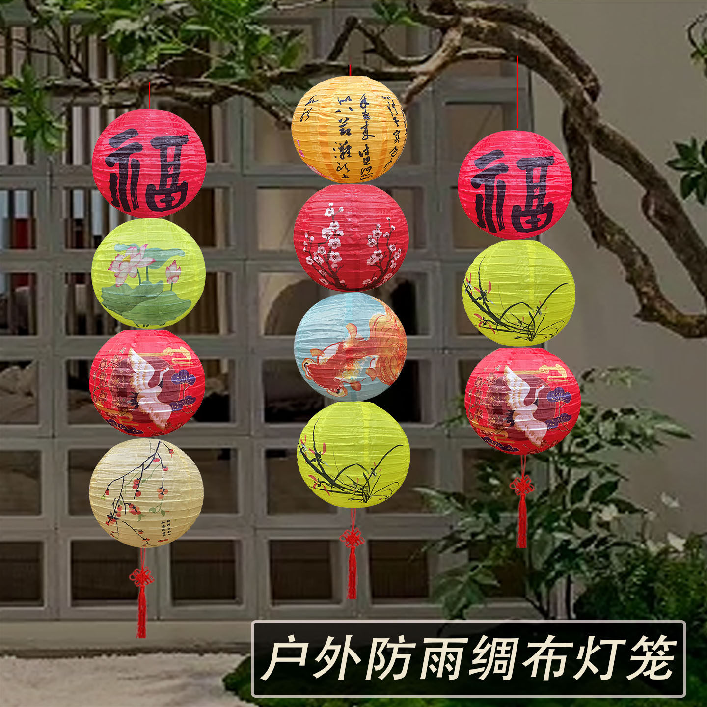 布艺古风灯笼挂饰户外防雨水绸布花灯元宵新年春节氛围福灯笼装饰