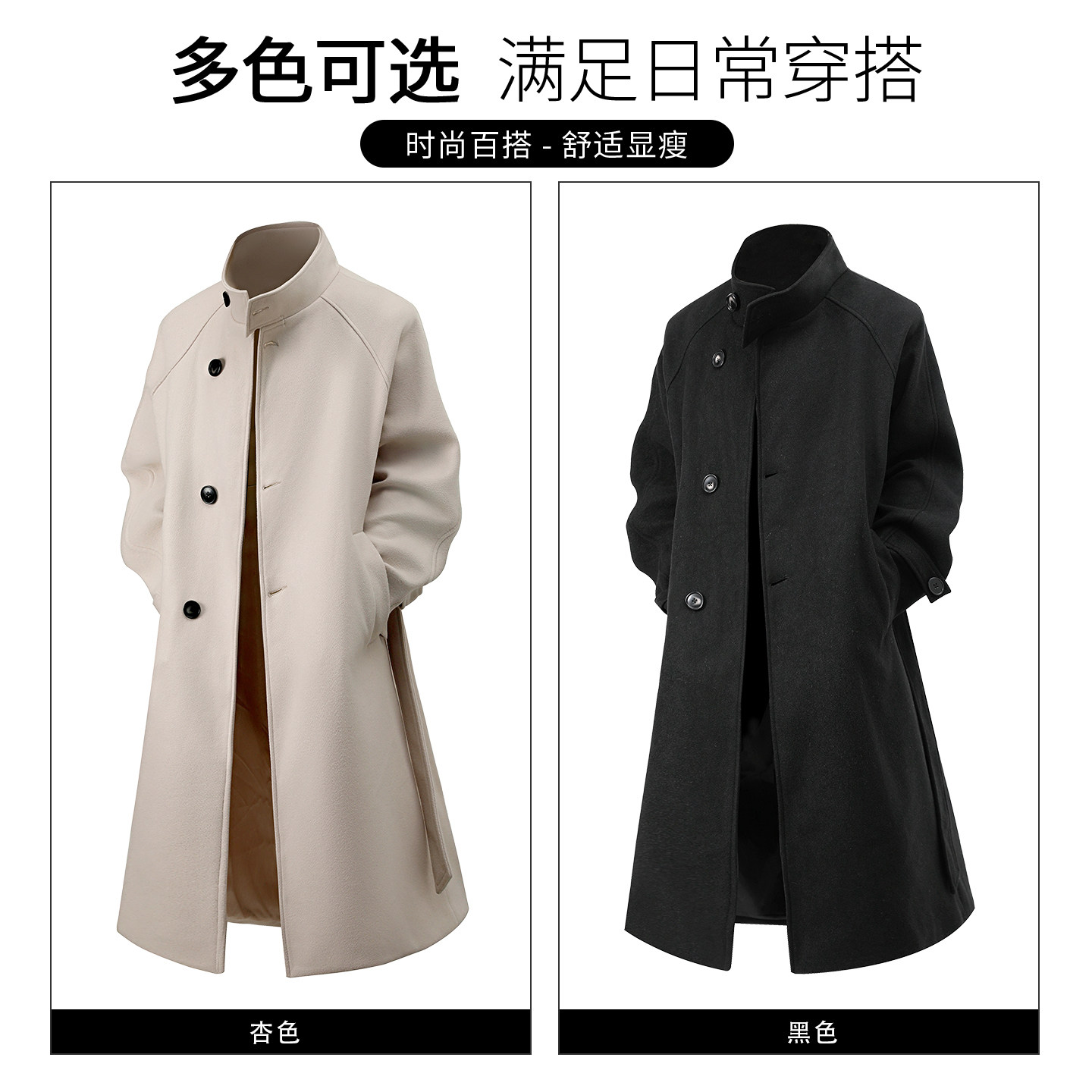 it5cm黑色立领长款毛呢大衣