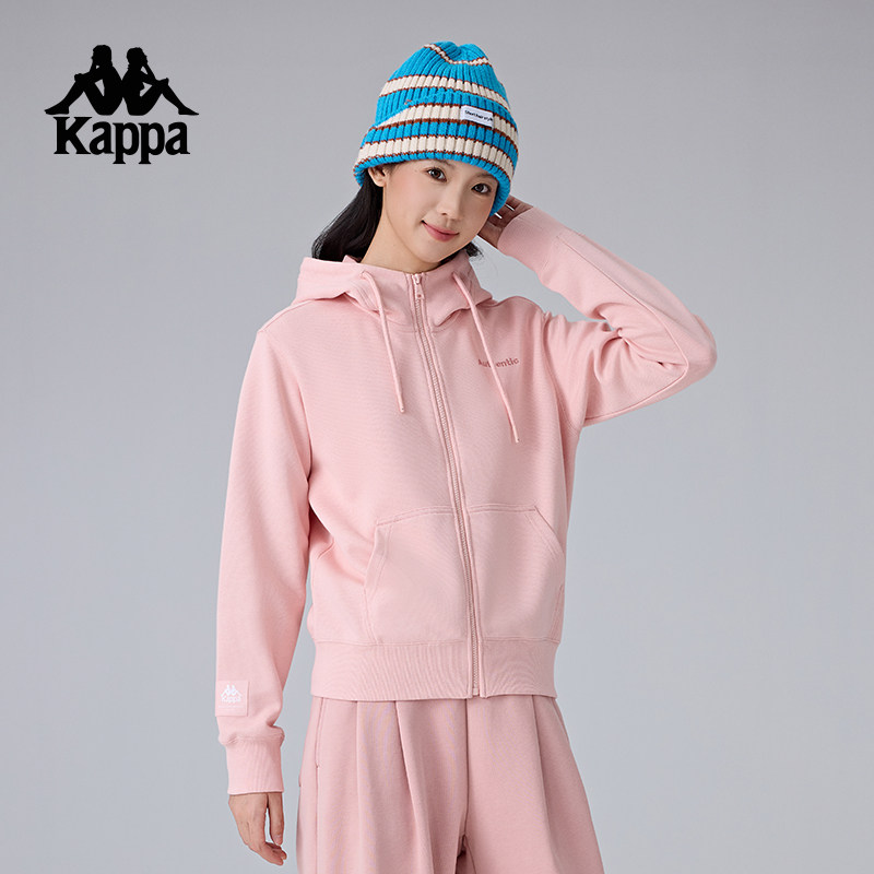 Kappa卡帕背靠背运动外套女新款春秋季休闲百搭针织连帽开衫上衣