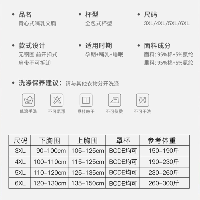 200-300斤孕妇哺乳文胸背心式无钢圈大码内衣喂奶胸罩纯棉怀孕期E