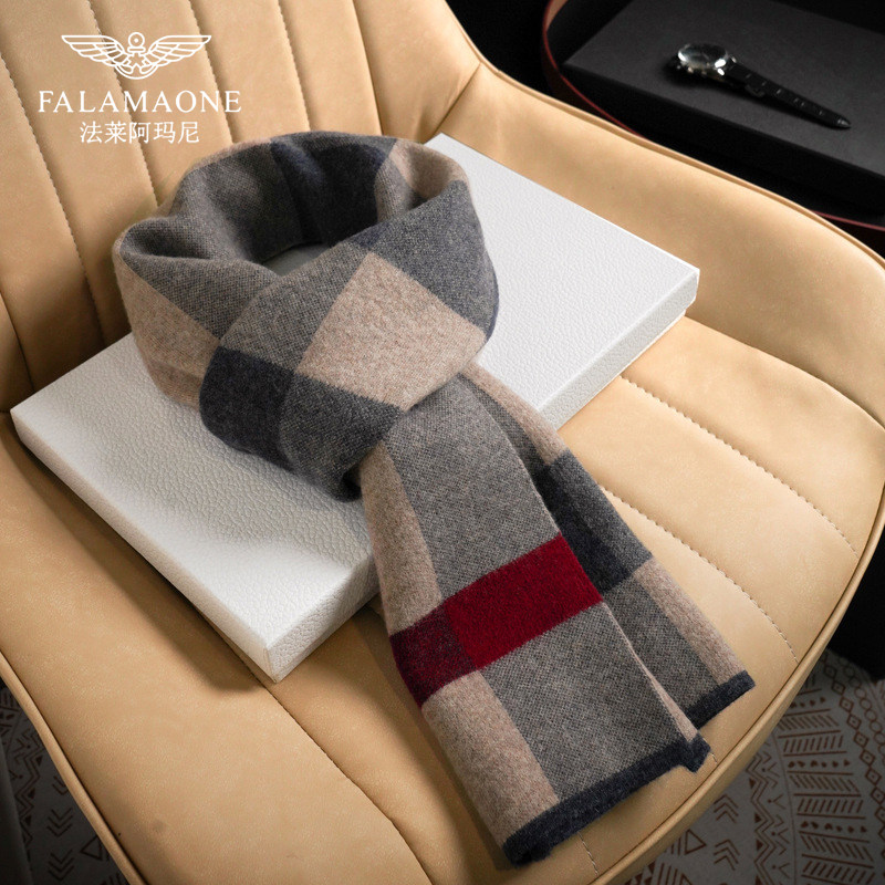 法莱阿玛尼男士时尚保暖围巾秋冬纯羊毛男款针织围脖送男友礼盒装