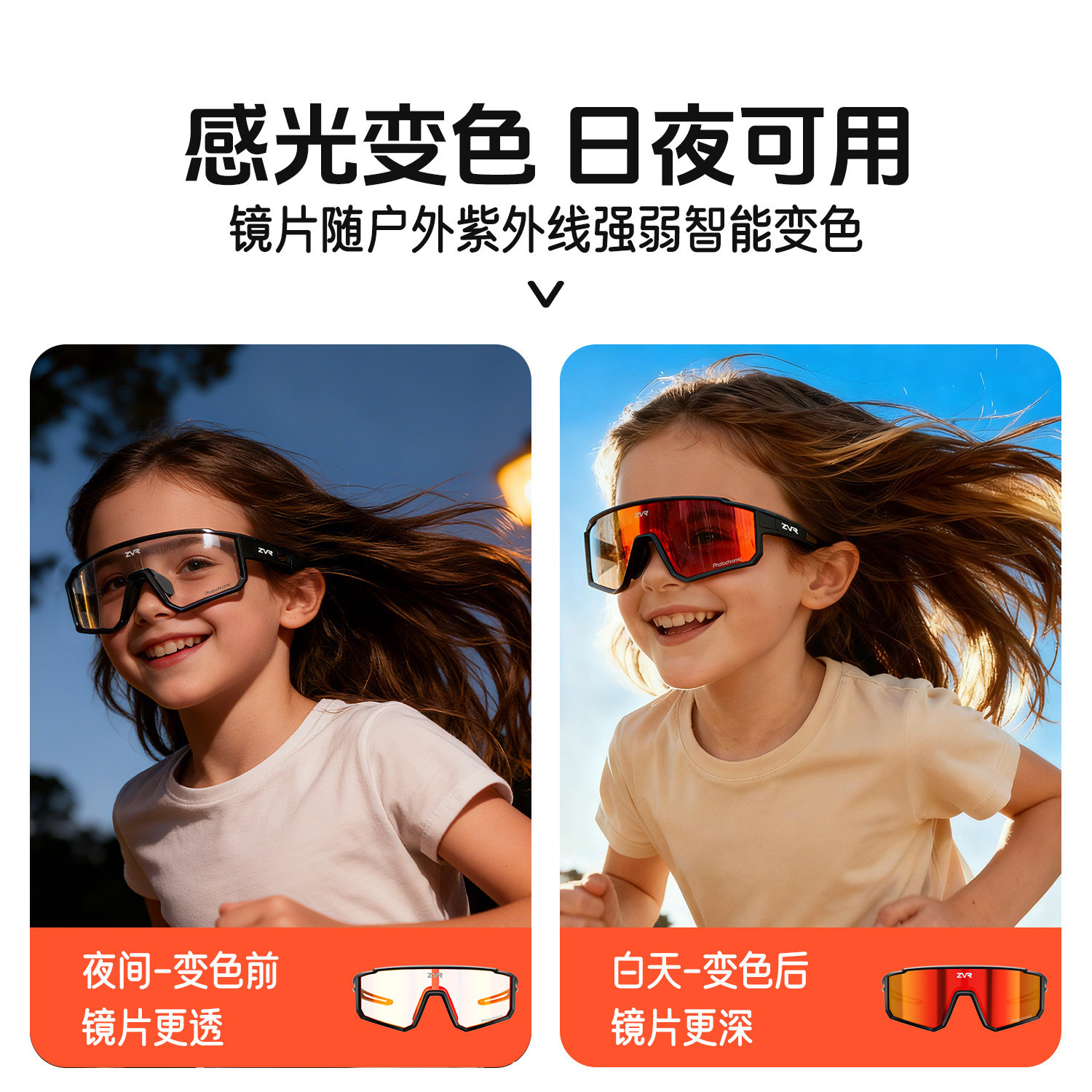 ZVR儿童骑行眼镜防风变色青少年运动跑步户外偏光登山护目太阳镜