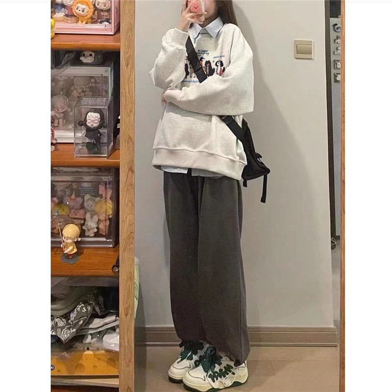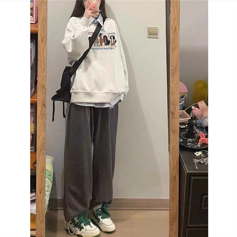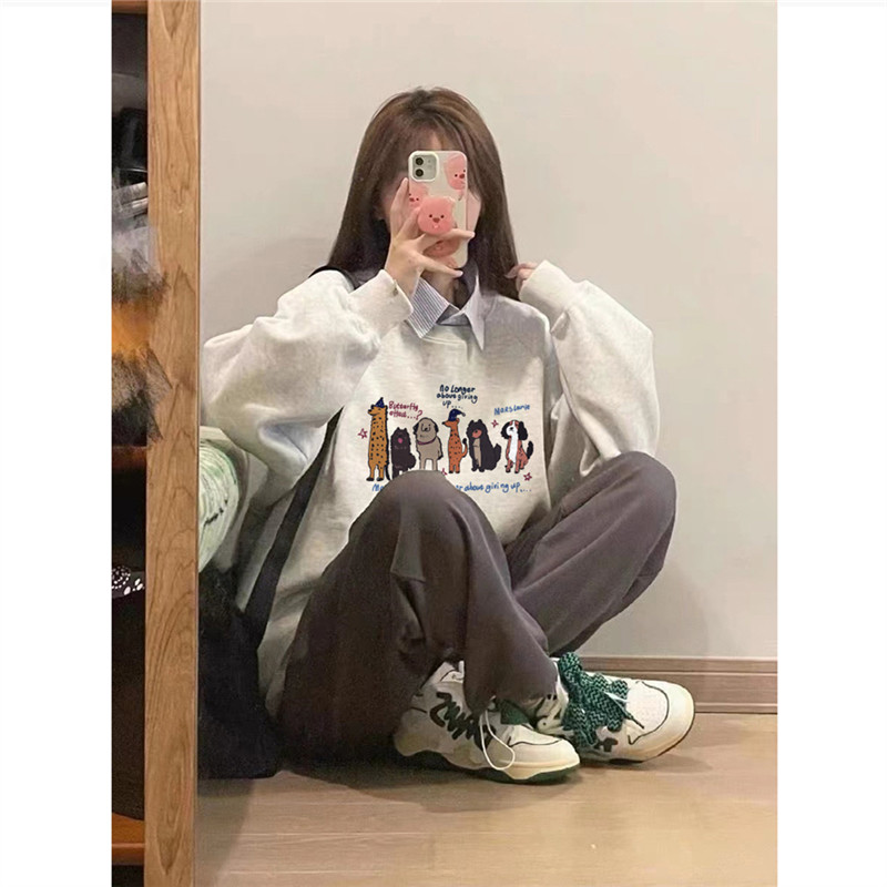 纯棉美式复古卡通圆领卫衣女宽松