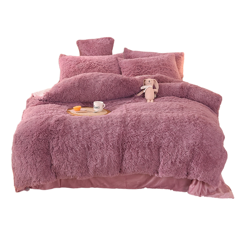 2025新款长毛绒水貂绒四件套冬季纯色加绒双面珊瑚绒被套床单床品