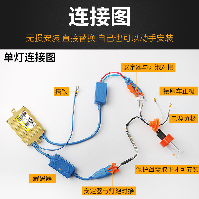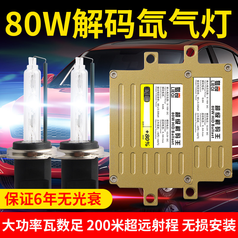 80W解码氙气灯套装汽车快启疝气大灯泡H1H4 H7超亮强光改装9005