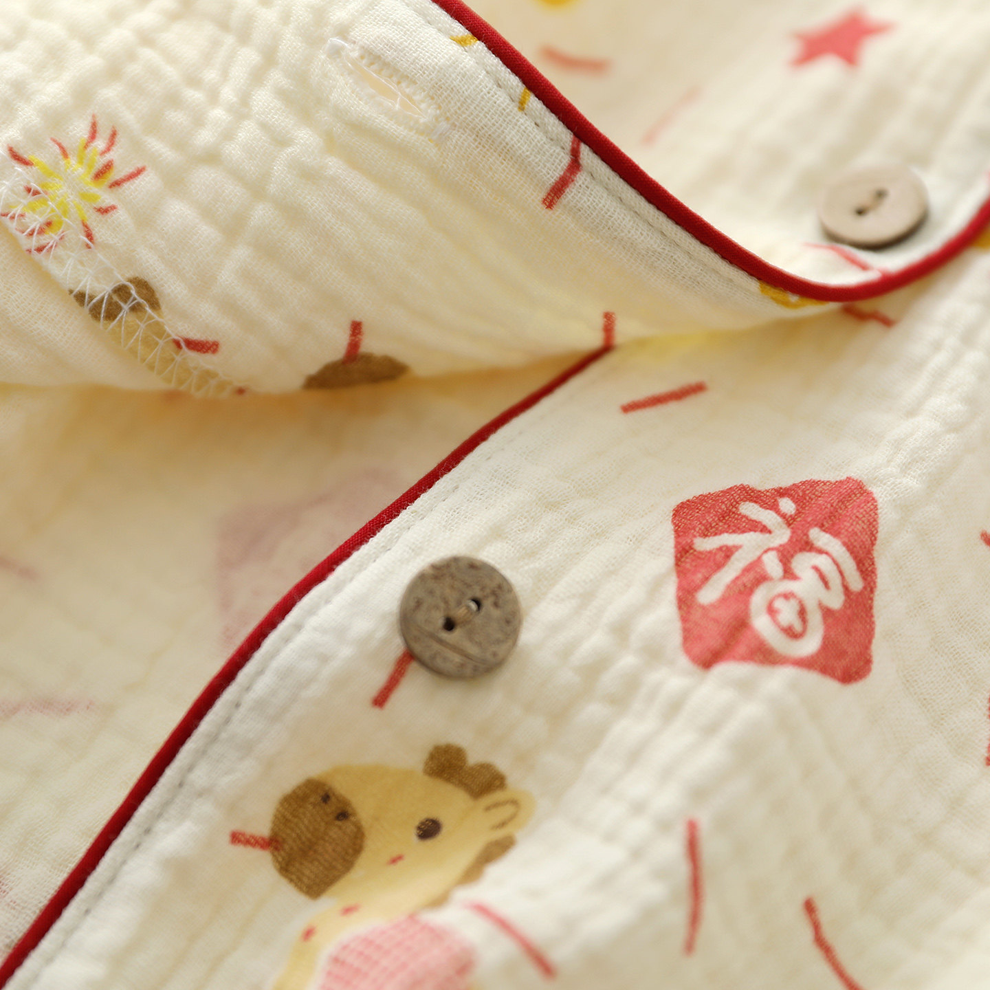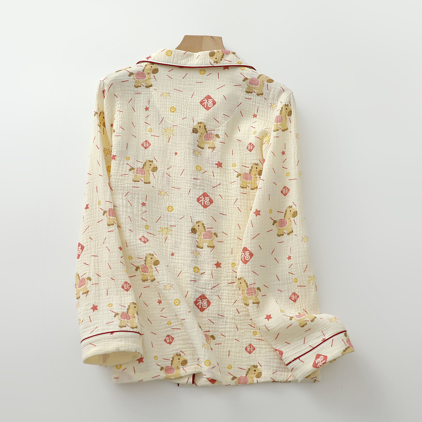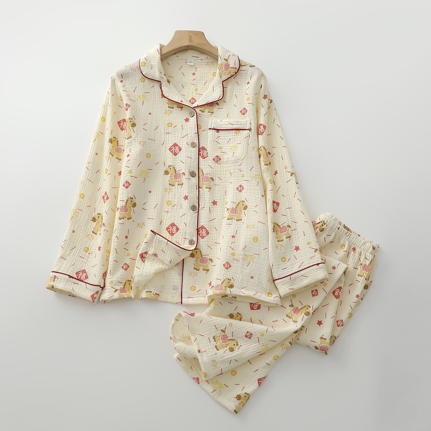 卡通小马年睡衣套装女生纯棉纱开衫翻领长袖长裤春夏薄家居睡眠服