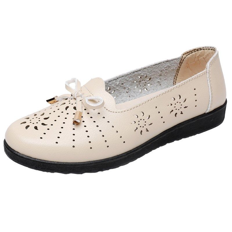 2025新款妈妈凉鞋女夏季鞋子平底中老年人皮鞋防滑软底中年洞洞鞋