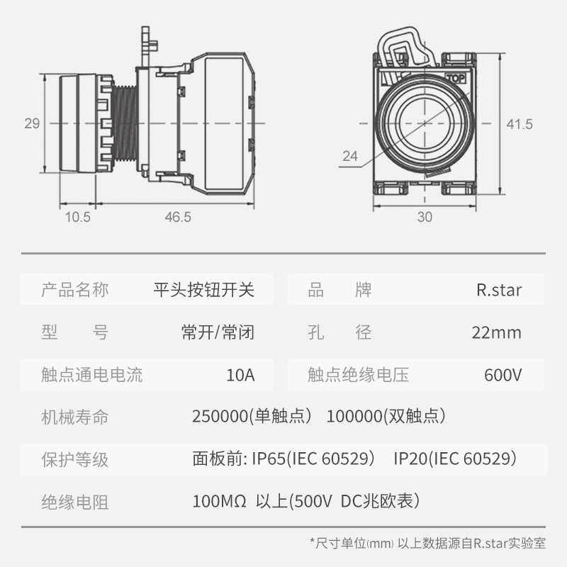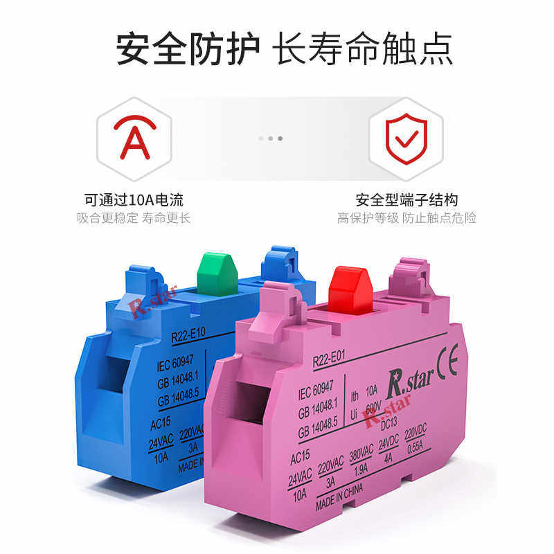 R.star日星按钮开关平头自复位自锁定22mm绿色按钮启动R22B-M110G
