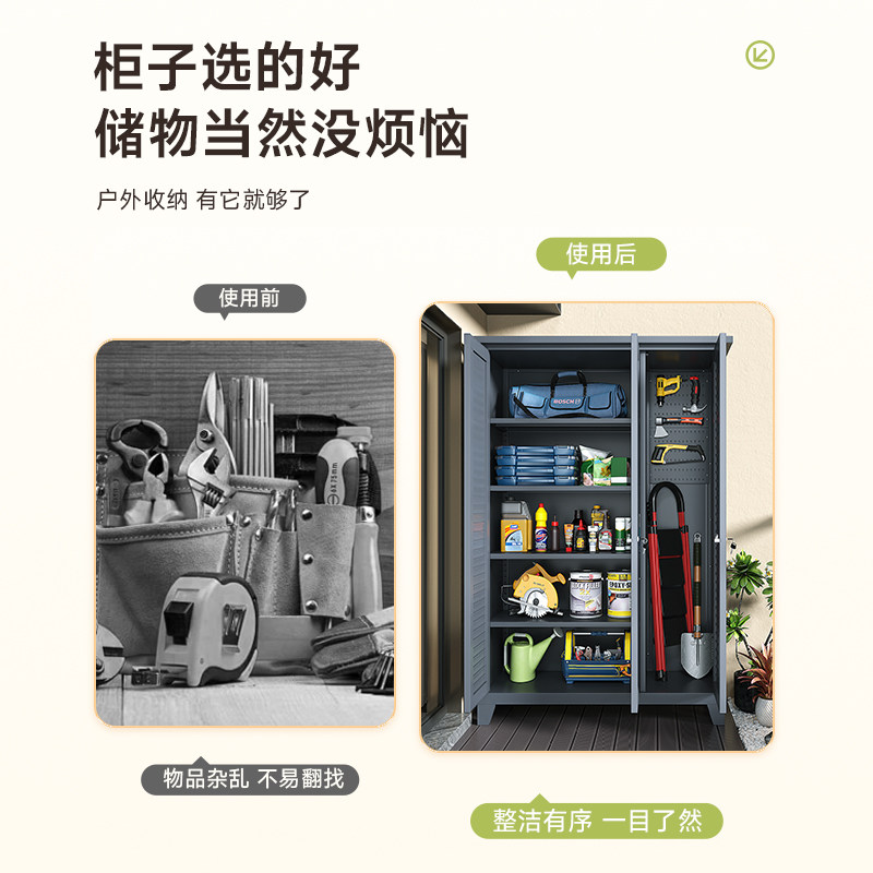 阳台储物柜家用钢制防水防晒杂物衣柜落地多层户外柜铁皮收纳柜子